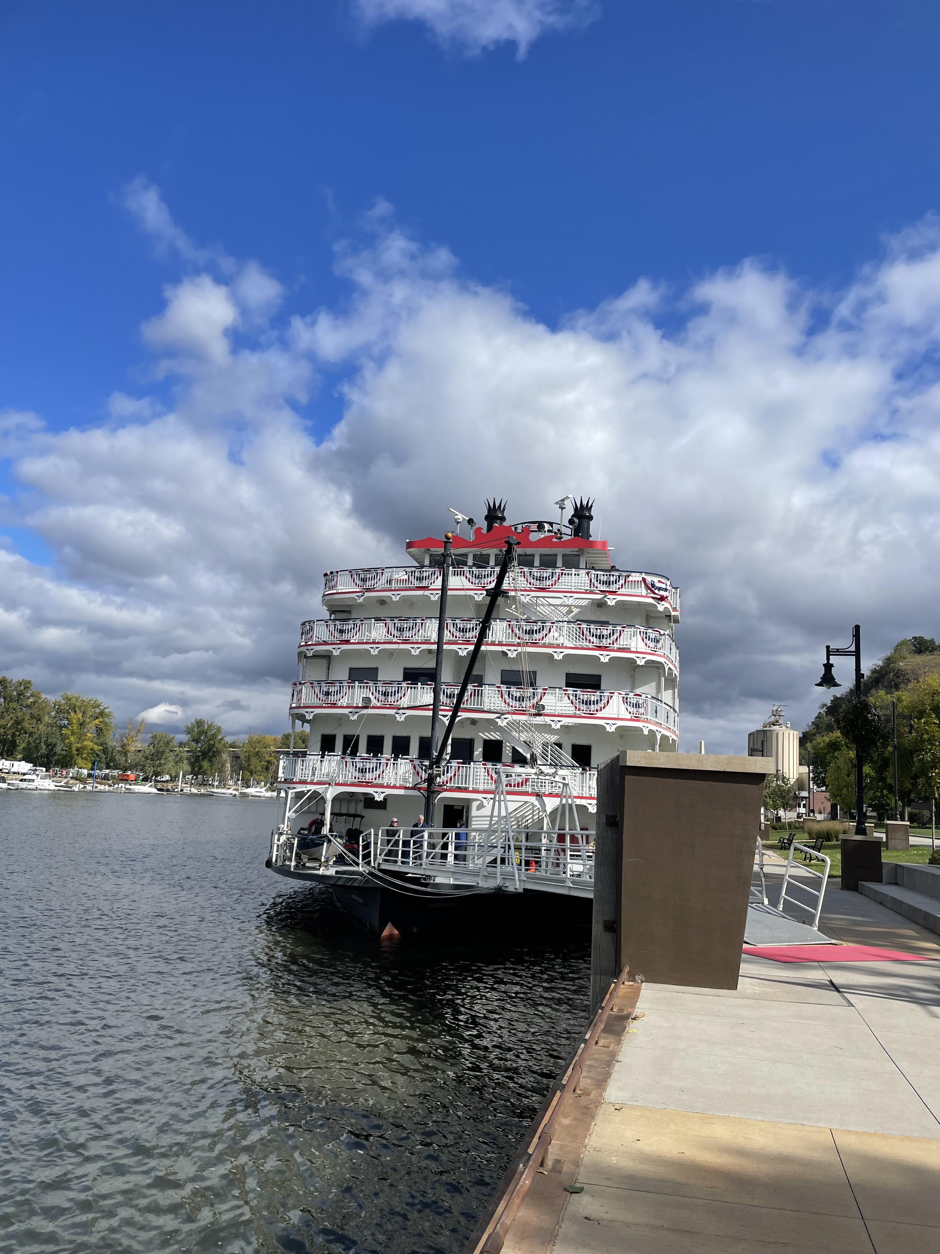 River Cruise Ship docked in Red Wing picking up passengers for its Fall Foliage River Cruise voyage down the Mississippi River. American Heritage River Cruise.